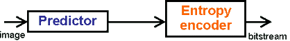 As described earlier, pure entropy coding does not perform well for images. Thus, some additional operation must be performed in both encoder and decoder as shown on pictures below.